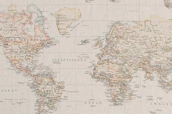 Map Fabric, World Map, per Meter, Upholstery Fabric, Home Decor