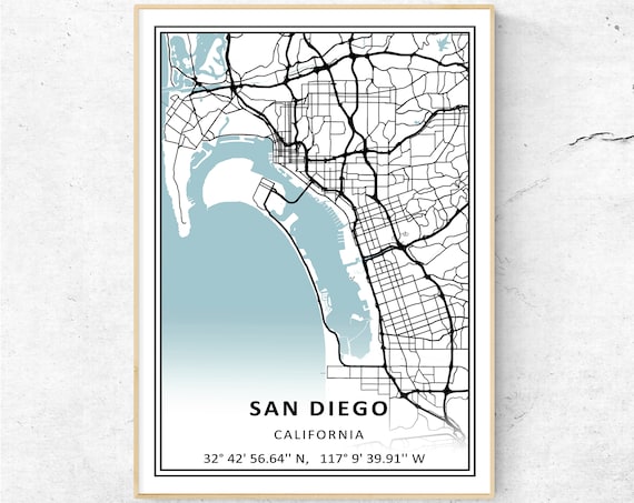 San Diego CA Map Print, US City Map Modern Wall Art, California